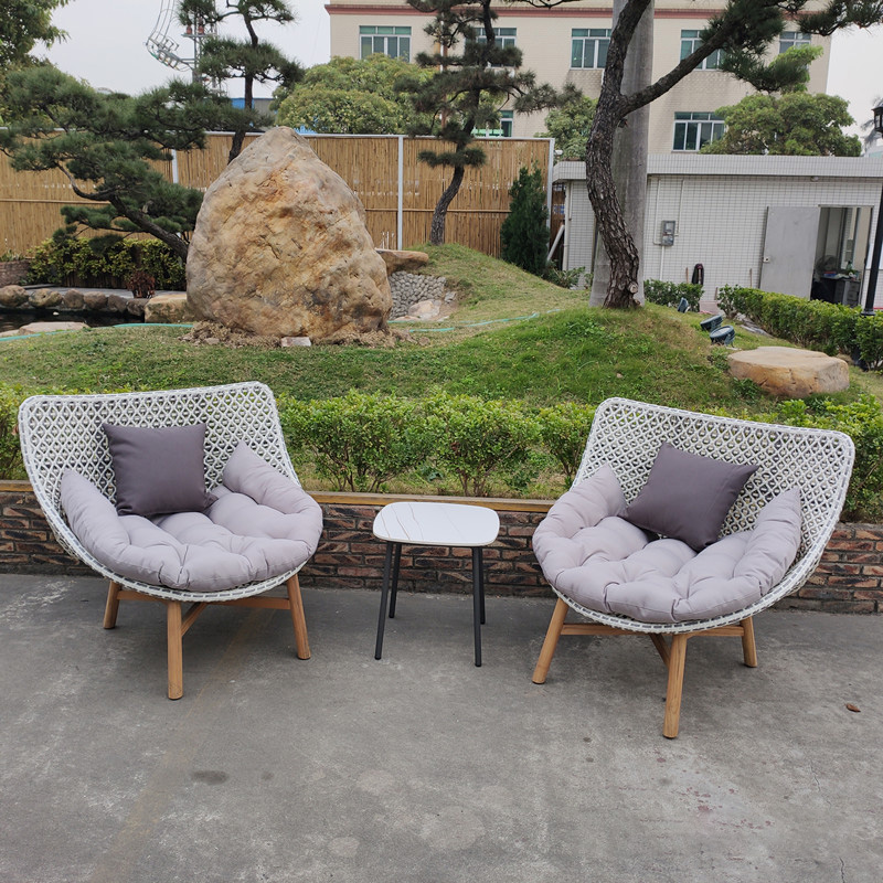 ● 5088 BIG SIZE TEAK WOOD BASE LEISURE CHAIR SET: This 3-piece outdoor furniture set includes 2 hand-woven rattan chairs and a matching round conversation table to warmly welcome friends and family to your patio, porch, yard, balcony, or other space